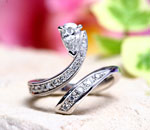 指に吸い付くように巻き込んだペアーシェープダイヤモンドのエンゲージリング