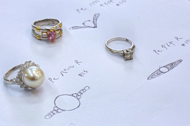 よくあるデパートの催事場宝石フェアーでやっている既成の枠をただ入れ替えるだけのリフォーム加工とは違い一からデザイナー自らデザイン提案してお作りする為見積もりもその場で出来るのが茜工房の強みです!
