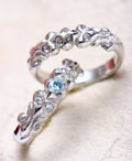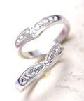 二つが重なると一本のリングが完成されるシンプルな唐草が掘り込まれたマリッジリング