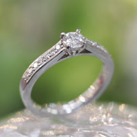 私は、一目でお母様の指輪だと気付きました。その指輪のデザインは昔流行ったタテ爪のリングで0.2ctと少々小ぶりなものでしたがとても質が良く綺麗なダイヤでした。